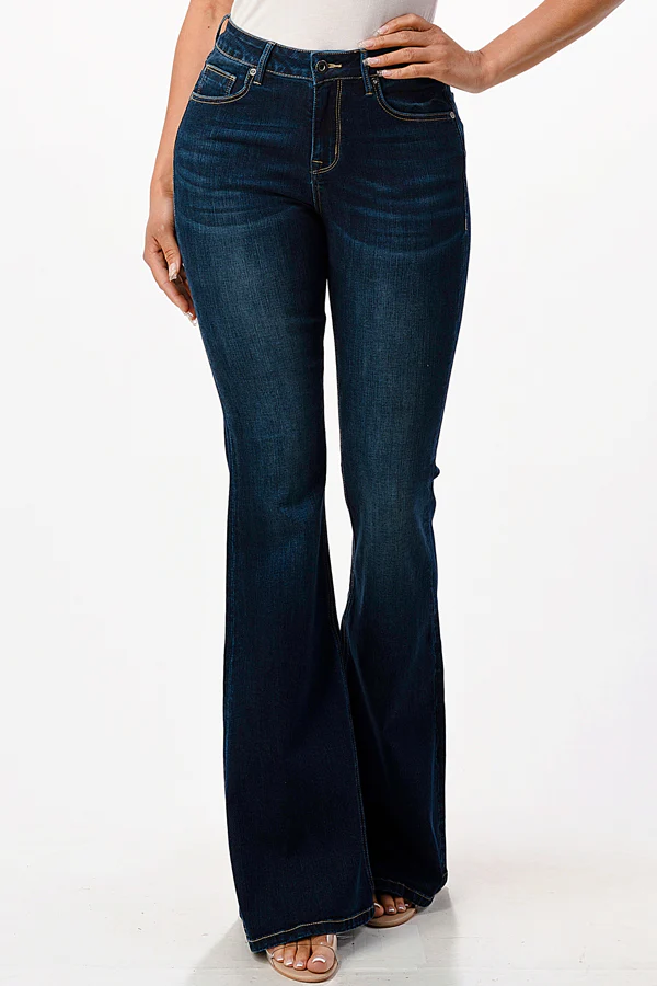 Dark Blue Wash Flare Mid-Rise Jeans – Grace in LA