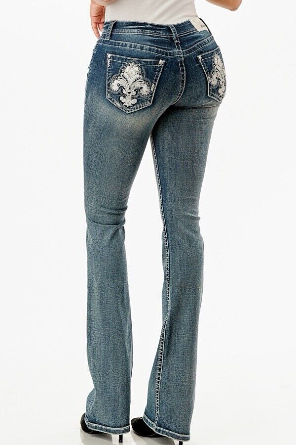 Fleur De Lis Mid Rise Embellished Bootcut Jeans – Grace in LA
