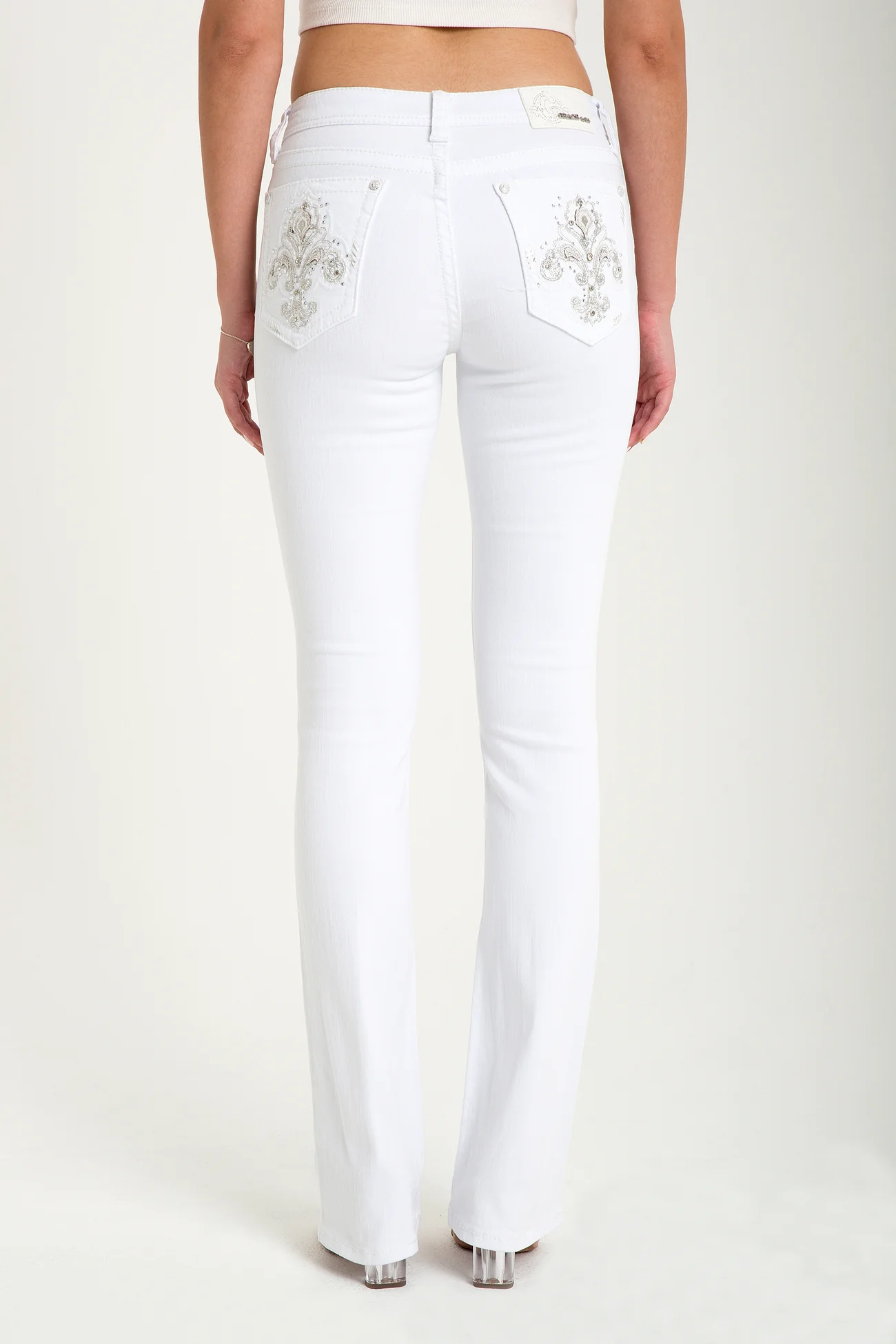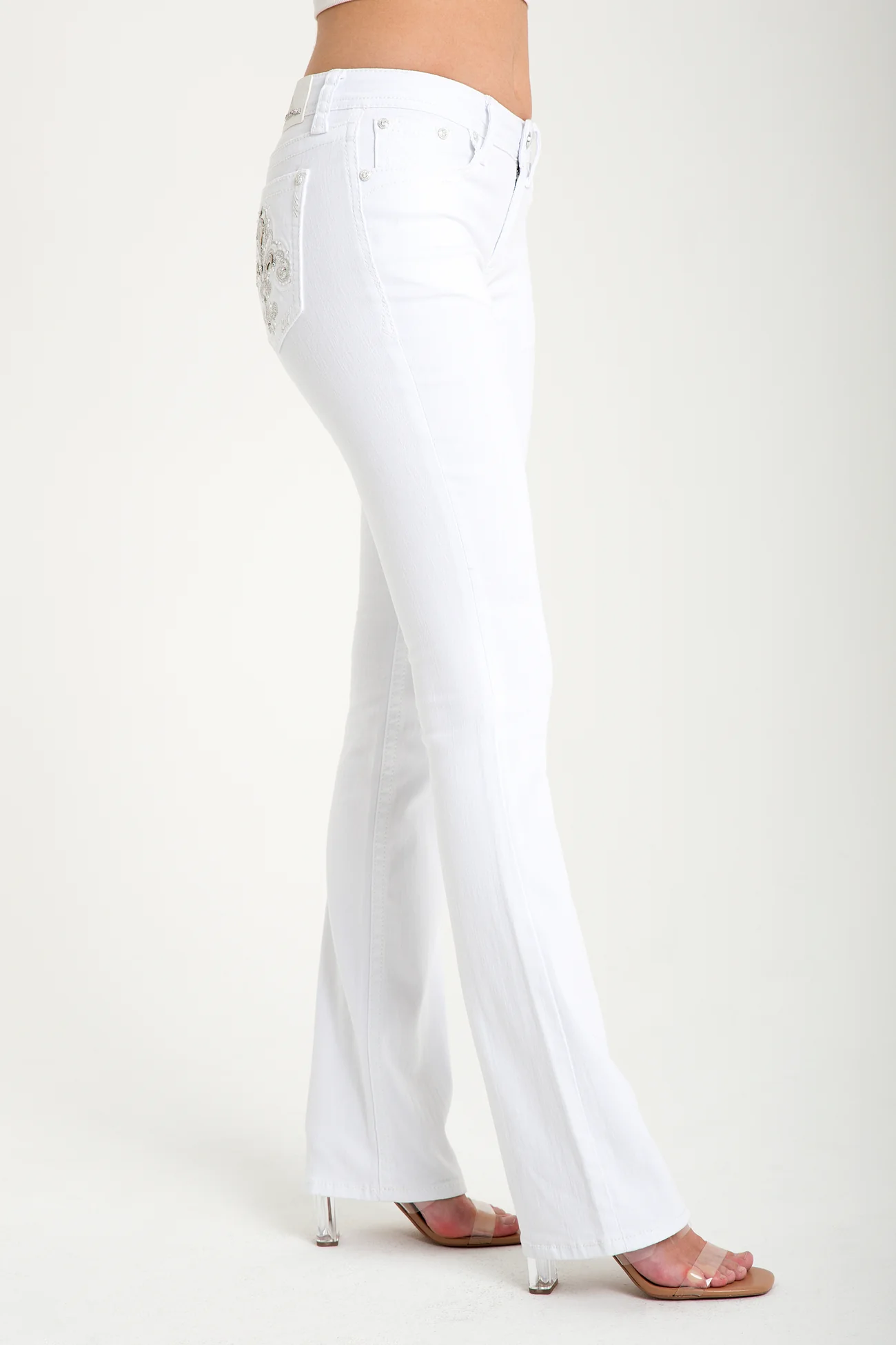 Fleur De Lis Mid Rise Embellished Bootcut Jeans – Grace in LA